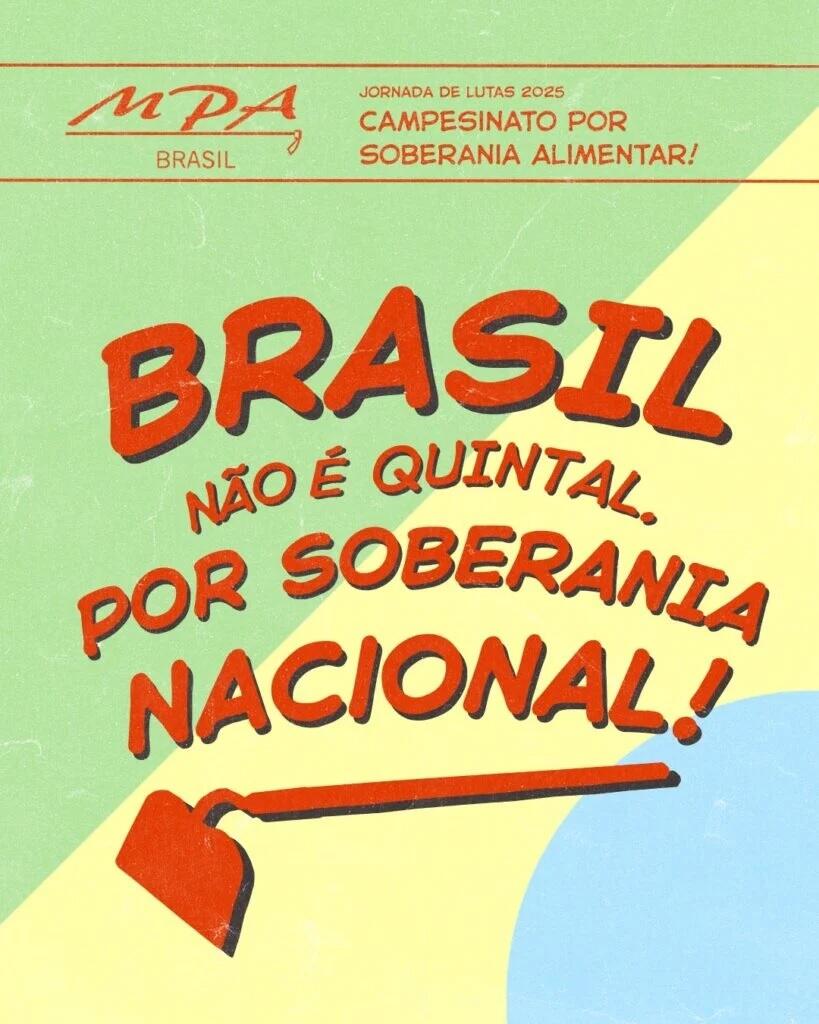 Sob o lema “O Brasil Não é Quintal – Por Soberania Alimentar e Nacional!”, o MPA denuncia a submissão do país aos interesses do agronegócio, das multinacionais e às investidas do imperialismo estadunidense, que ameaçam a autonomia nacional e a soberania dos povos.