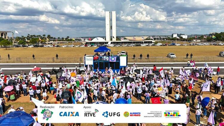 A Mobilização em frente a Esplanada dos Ministérios, concluiu a programação dos três dias do Congresso Nacional que reuniu aproximadamente 2 mil mulheres, na Granja do Torto, entre os dias 13, 14 e 15 de outubro de 2025. O evento, durante os três dias, contou com a realização de rodas de conversa temáticas, mostra de produção e ciência com produtos produzidos pelas camponesas, lançamento do hino do movimento, aprovação do documento tese, troca de sementes crioulas, entre outras atividades.