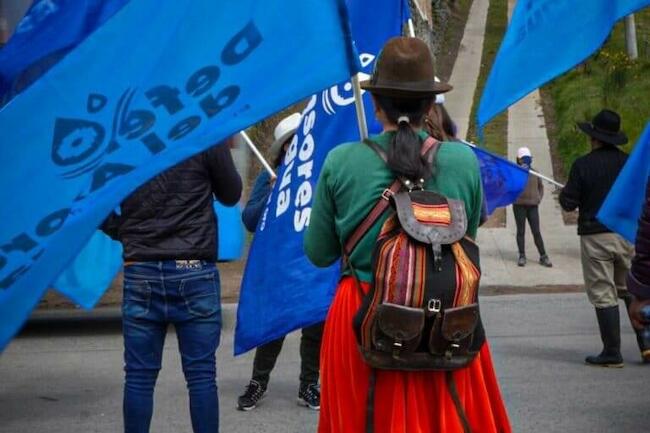 En Azuay, habitantes indígenas y campesinos protestaron en contra de la minería en el páramo de Kimsakocha. Foto: cortesía FOA