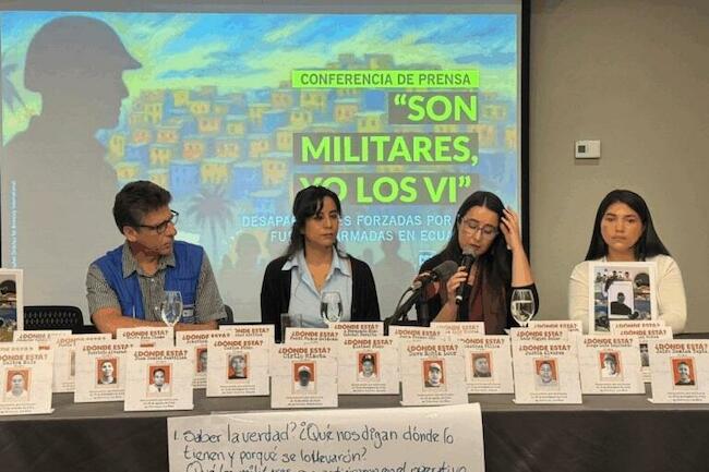 —Lo que nosotros documentamos fue que en 2024, desde enero hasta diciembre, hubo un alza significativa y sin precedentes para la historia reciente de Ecuador de denuncias de desapariciones cometidas a manos de los militares, todas concentradas en provincias de la costa ecuatoriana, que son las provincias con más alta tasa de violencia y donde se ha desplegado con mayor fuerza esta estrategia militarizada. Y lo que notamos es que, en el marco de estos operativos de seguridad llevados a cabo por los militares, empezaron a subir las denuncias de desapariciones. Es muy importante notar que todas las víctimas son personas jóvenes, incluso niños de comunidades históricamente marginalizadas y racializadas [se trata de comunidades afroecuatorianas]. En nuestro informe documentamos las historias de personas, seis de las cuales son niños. En las provincias de los ríos Esmeraldas y Guayas, con el caso de los cuatro las Malvinas, siendo el más conocido.