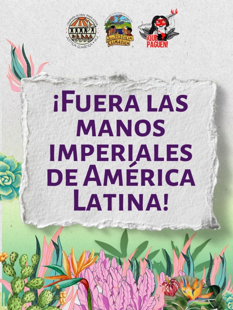 - Justicia Climática y Reparaciones Históricas: Los países del Norte Global deben pagar su deuda ecológica, no iniciar guerras para seguir profundizando el modelo basado en combustibles fósiles.