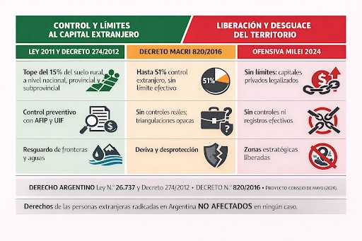 Es importante subrayar que la Ley 26.737 no estuvo orientada a restringir derechos de personas extranjeras residentes en el país ni a penalizar situaciones de arraigo. La regulación se centró en el control del capital y de las decisiones societarias, y no en la nacionalidad o residencia de las personas involucradas, si éstas se encontraban radicadas en territorio nacional.