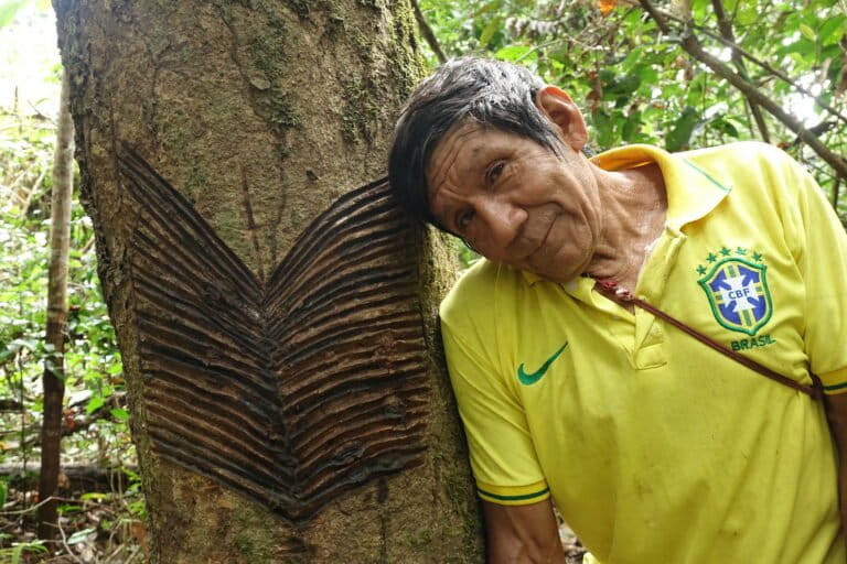 Dice que primero fue el caucho, a comienzos de 1960, que trajo consigo la violencia del contacto y enfermedades que diezmaron cuerpos y espíritus. Luego, fue la castaña, menos agresiva, pero que “mantuvo la lógica de extracción que convierte a la selva en mercancía”.