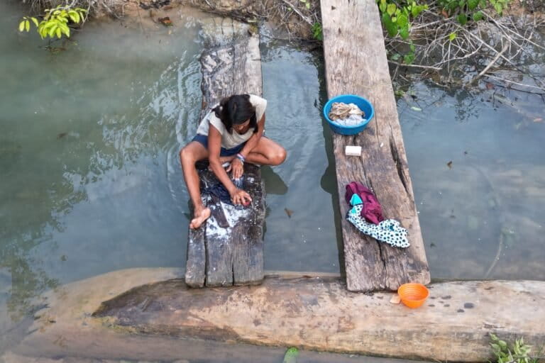 Toy lavando la ropa en el riachuelo. Foto: Karina Segovia