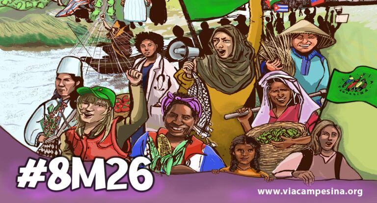 La Vía Campesina hizo un llamado global donde se recoge las principales demandas, también puedes consultar nuestro padlet #8M26 de acciones de nuestras organizaciones en todo el mundo.