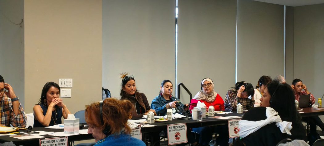 Em nossa casa em Manhattan, graças à hospitalidade e à abertura permanente dos padres e irmãos de Maryknoll, reunimo-nos à noite com Patricia, as seis lideranças das três redes (Keila, Lucila, Margarita, Irmã Suyapa, Edigibaly e Marielba), juntamente com os companheiros e companheiras que dão suporte técnico a partir do Cimi (Conselho Indigenista Missionário), Alboan (organização jesuíta), Claretianos, Endepa (Equipe Nacional de Pastoral Aborígene) e Cáritas Espanhola, com a colaboração do Puam (Programa Universitário Amazônico).
