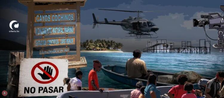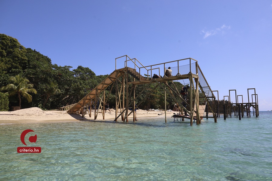 Al arribar a la isla, una integrante del equipo de producción ––una mujer española–– observa malhumorada la llegada de la lancha, comienza a grabar desde su celular y opta por no corresponder el “buenos días” del equipo de Criterio.hn. Ella forma parte del equipo logístico del reality que cada temporada convierte al Monumento Nacional Marino en escenario televisivo.