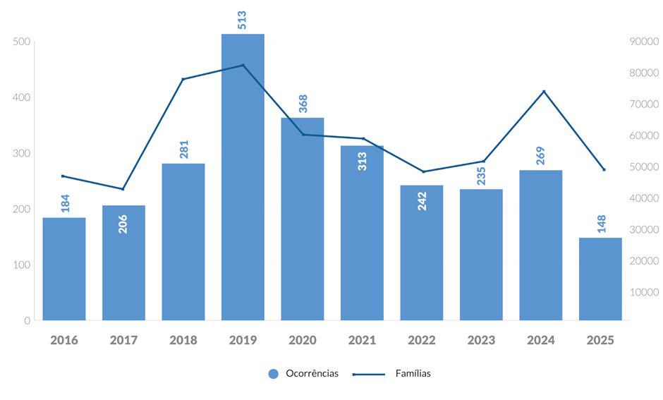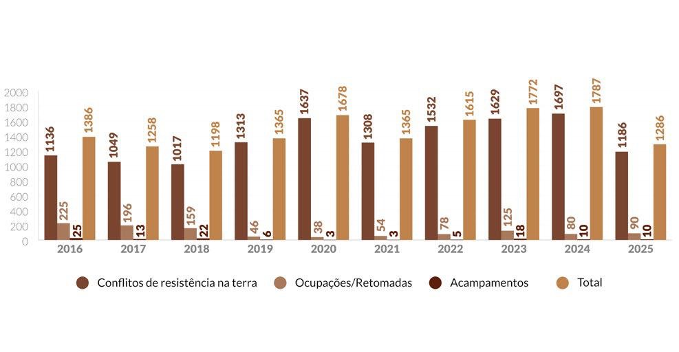 Conflitos por terra no Brasil (2016-2025). Fonte: Cedoc/CPT.