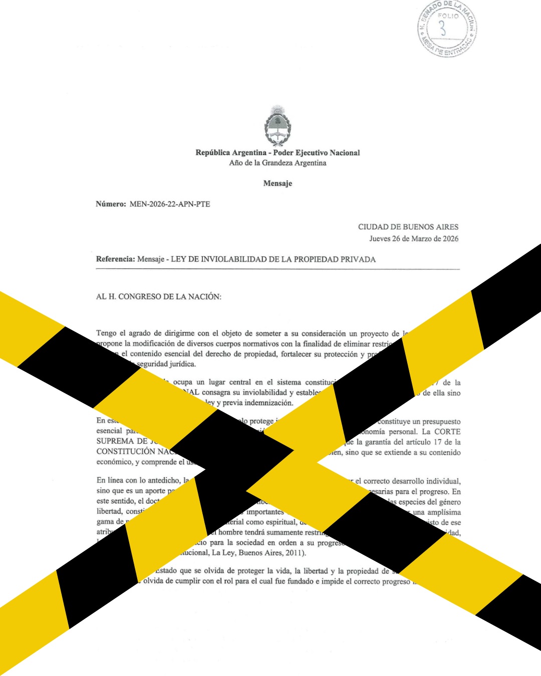 La iniciativa se inscribe en el paquete denominado “Ley de Inviolabilidad de la Propiedad Privada”, impulsado por el ministro de Desregulación, Federico Sturzenegger. En sus fundamentos, el proyecto cuestiona la noción de utilidad pública y busca blindar el derecho de propiedad como un derecho prácticamente absoluto, por encima de restricciones sociales, ambientales y colectivas.
