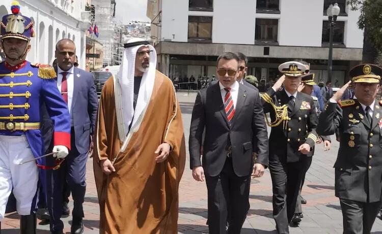 El hijo del presidente de Emiratos Árabes Unidos estuvo de visita oficial a Ecuador, pese a las tensiones que vive Medio Oriente. Además, del acuerdo comercial se firmaron tres instrumentos de cooperación en materia de inversiones, lucha contra la corrupción y seguridad fronteriza.