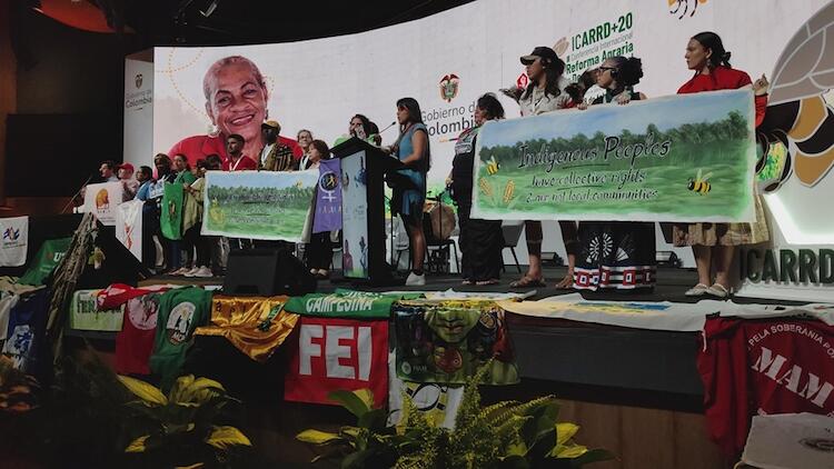 No podemos aceptar la declaración de esta Conferencia. En los próximos meses y años, sentiremos sus efectos en nuestras comunidades y territorios. Sin embargo, continuaremos nuestra lucha y nuestro trabajo para que los conceptos que socavan los derechos de los Pueblos Indígenas y los de otras comunidades rurales sean eliminados de las convenciones internacionales. Estamos dispuestos a trabajar con todos los gobiernos para lograr la plena realización de los derechos humanos y los derechos de los Pueblos Indígenas. Hacemos un llamado a todos los gobiernos para que mantengan con nosotrxs un diálogo de buena fe sobre las cuestiones de los Pueblos Indígenas, los derechos de los pueblos de la pesca y los pastores nómadas, los derechos de las mujeres y la agroecología. La reforma agraria, la soberanía alimentaria y la justicia social, agraria y medioambiental solo se lograrán mediante la lucha. Ahora regresamos a nuestros hogares para organizar a nuestros pueblos y organizaciones con el fin de librar esta lucha por el futuro de los pueblos y la Madre Tierra.