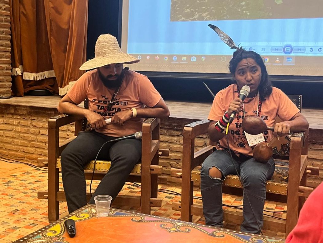 Indígenas durante diálogo sobre o que vem servindo de conteúdo para a atuação do grupo. Foto: Tahpera