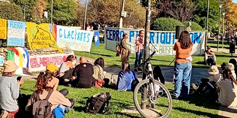 Para finalizar, Karina explicó “La modificación de la Ley de Glaciares a nosotros nos afecta de lleno. Le entregaron el permiso de cateo minero a una empresa que se denomina como el puente entre Israel y Argentina en las nacientes del río Chubut y a raíz de las manifestaciones que hubieron en defensa de los glaciares, el gobierno de Río Negro se retractó, es decir negó que le había dado el permiso, cuando eso estuvo publicado y fue denunciado por una periodista y una diputada –Odarda- en Río Negro. Nosotres seguimos luchando como lo venimos haciendo desde acá en éste territorio muy en simultáneo porque nos hermanamos con la lucha de Esquel desde 2003 cuando se le dijo NO A LA MINA, asique con una fuerte conciencia de lo que es el cuidado del agua en conjunto con nuestro pueblo originario, muchos de nosotros somos y tenemos sangre mapuche y nos paramos desde ahí, a defender el territorio.”