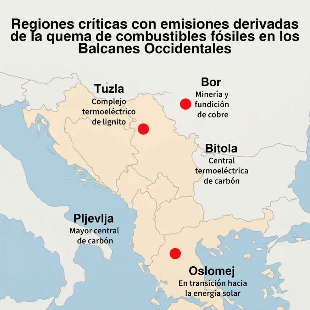 Según la Agencia Europea de Medio Ambiente, seis de las diez centrales eléctricas más contaminantes de Europa se encuentran en los Balcanes Occidentales y emiten más dióxido de azufre que todas las centrales de carbón de la Unión Europea (UE) juntas. En Macedonia del Norte, alrededor del 45 % de la electricidad sigue procediendo del carbón, mientras que en Serbia este porcentaje supera el 65 %.