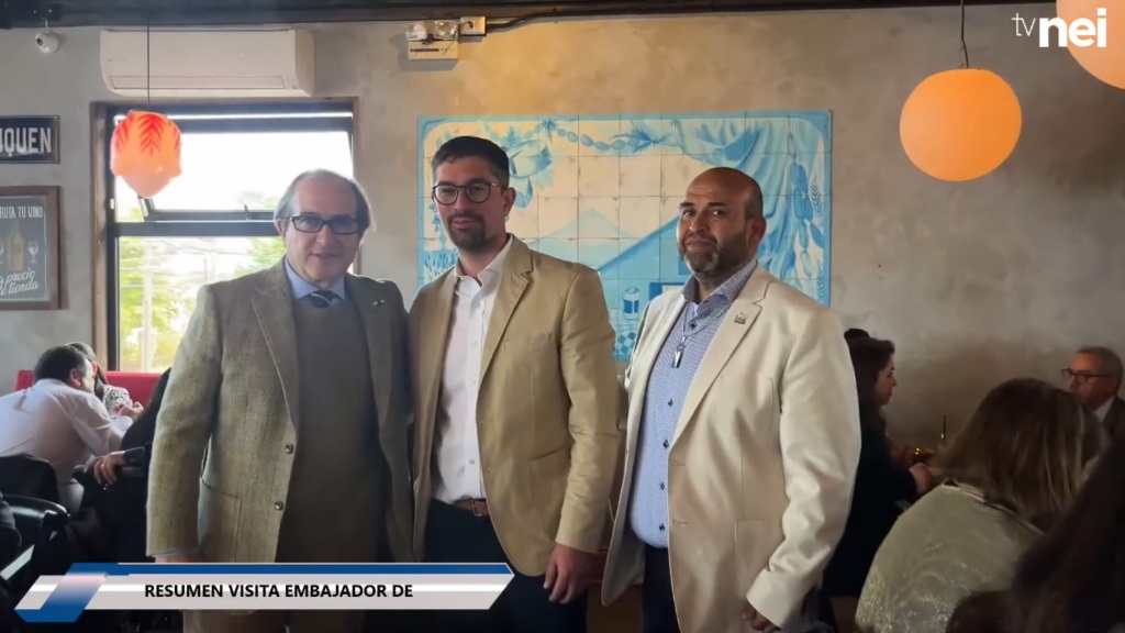 De izquierda a derecha: embajador Gil Artzyeli, alcalde Javier Arizmendi, pastor Marco Melo. En almuerzo con embajador diciembre 2024. Foto: Redes sociales.