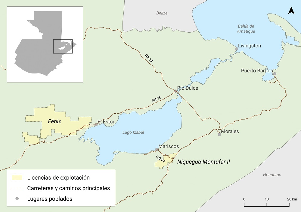 Es en estos años que apareció la primera iteración del actual proyecto minero. La canadiense INCO, a través de su subsidiaria local EXMIBAL, obtuvo concesiones mineras en la región y empezó a comprar las fincas “de papel” creadas décadas antes. Sin embargo, la explotación no comenzó hasta 1978 y se detuvo apenas cuatro años después, debido a la caída de los precios mundiales del níquel y, probablemente, a la agudización del conflicto armado interno. En 2004, en medio de un auge global del precio de las materias primas, la empresa canadiense Skye Resources reactivó el proyecto, rebautizando EXMIBAL como CGN y reiniciando actividades de exploración. Skye fue adquirida por la multinacional canadiense Hudbay en 2008, que tres años después vendió el proyecto a Solway. La explotación minera en sí anudó en 2014 y sigue hasta el día de hoy.