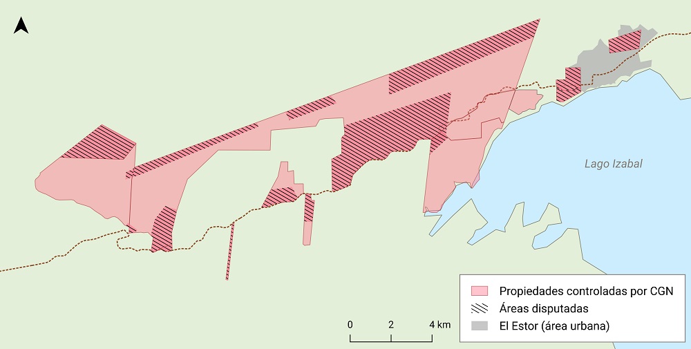 Desde la perspectiva de CGN, sus extensas propiedades pueden servir de solución ante la conflictividad social. Desde la perspectiva de las comunidades Q’eqchi’, sin embargo, la propiedad de estas tierras por parte de la empresa es precisamente la causa de los conflictos en la zona. Las raíces de esta disputa se remontan a las reformas liberales del siglo XIX, que permitieron que vastas áreas de tierra sin título –conocidas como baldíos– fueran reclamadas y cercadas como propiedad privada por Ladinos. En realidad, estas tierras distaban mucho de estar vacías, pues con frecuencia albergaban comunidades indígenas establecidas que fueron despojadas de un plumazo.