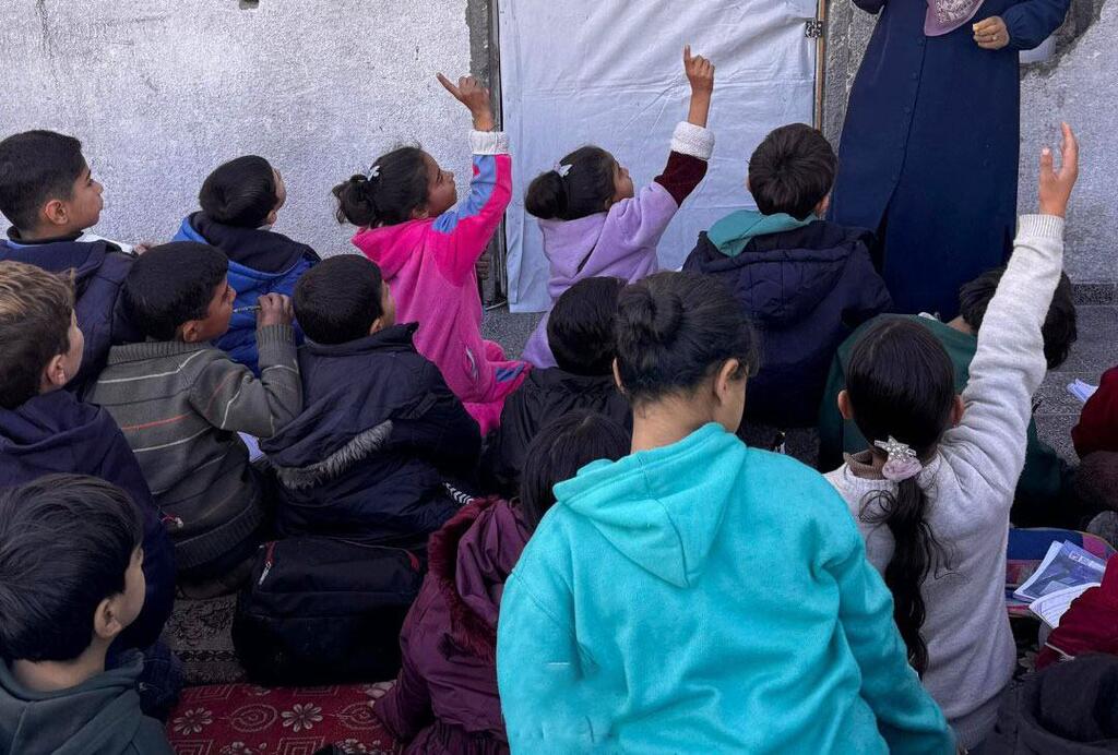 © UNRWA Los niños de Gaza participan en clases en un espacio de aprendizaje temporal establecido por la UNRWA.