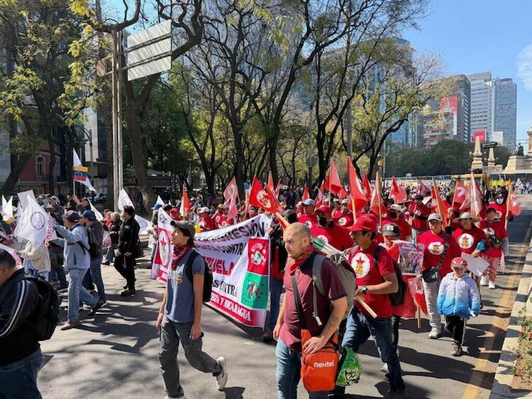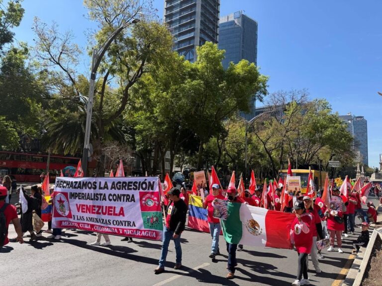 A convocatoria de la Coordinadora Mexicana de Solidaridad con Venezuela, este sábado 7 de febrero de 2026 en punto de las 11 horas, en el monumento del Ángel de la Independencia en el paseo de la Reforma para marchar al zócalo de la ciudad de México, se dieron cita más de 10.000 integrantes de colectivos y organizaciones populares, campesinas, indígenas, sindicales y políticas, para solidarizarse con el Pueblo de Venezuela por la agresión militar de los EE.UU. sufrida por ese país en pasado 3 de enero, que tuvo como resultado el secuestro del Presidente Nicolas Maduro y su esposa Cilia Flores y más de 100 asesinados. De igual modo la movilización rechazo las amenazas contra México, Cuba, Colombia y Nicaragua hechas por Donald Trump tras la agresión a Venezuela, además de reprobar el bloqueo petrolero contra Cuba.