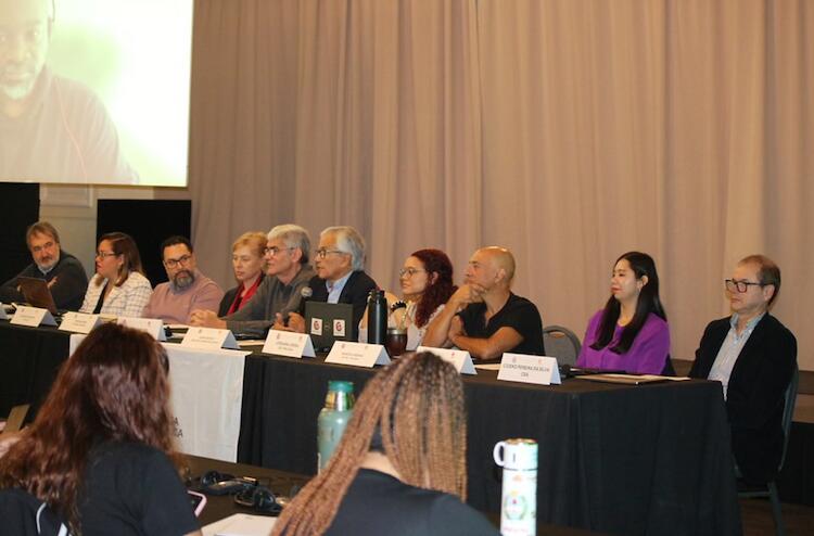 Paneles y participantes de la reunión