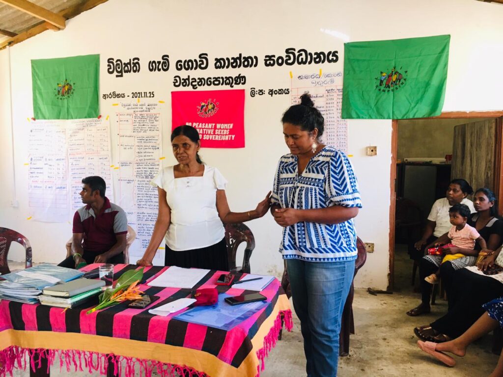 El Colectivo de Mujeres Campesinas Vimukti surgió tras las protestas de Satyāgraha realizadas en 2021, una forma de protesta pacífica con ocupación, protagonizada por mujeres campesinas victimizadas por las microfinanzas predatorias en Hingurakgoda. El Satyāgraha marcó el punto más alto de las movilizaciones contra los préstamos ilegítimos impuestos por empresas de microcrédito en Sri Lanka.
