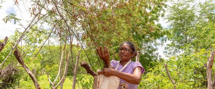 A partir de un proyecto que ya abarcaba la producción de las mujeres en sus patios, “Caatinga viva en manos de las mujeres” reunió 20 grupos que produjeron más de 8 mil plántulas de especies nativas de la Caatinga y diversas plantas alimentarias. “Queríamos ampliar la comprensión de la importancia de la Caatinga viva, en pie y agroforestada, para la permanencia de las mujeres en estos territorios”, explica Ivi. El proyecto desarrolla prácticas de agroforestería en los patios alrededor de las casas, apicultura y la preservación de semillas nativas.