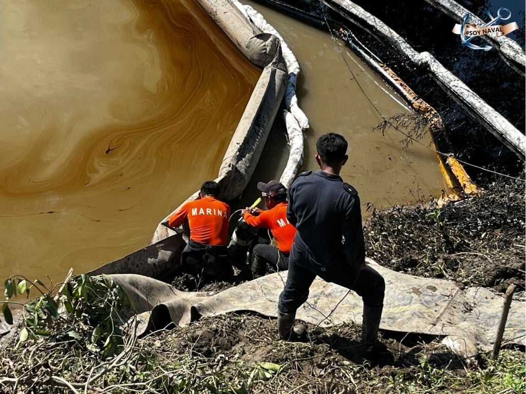 Labores de limpieza para contener un derrame de hidrocarburos que contaminó 8km del río Pantepec, en Veracruz a finales del 2025.