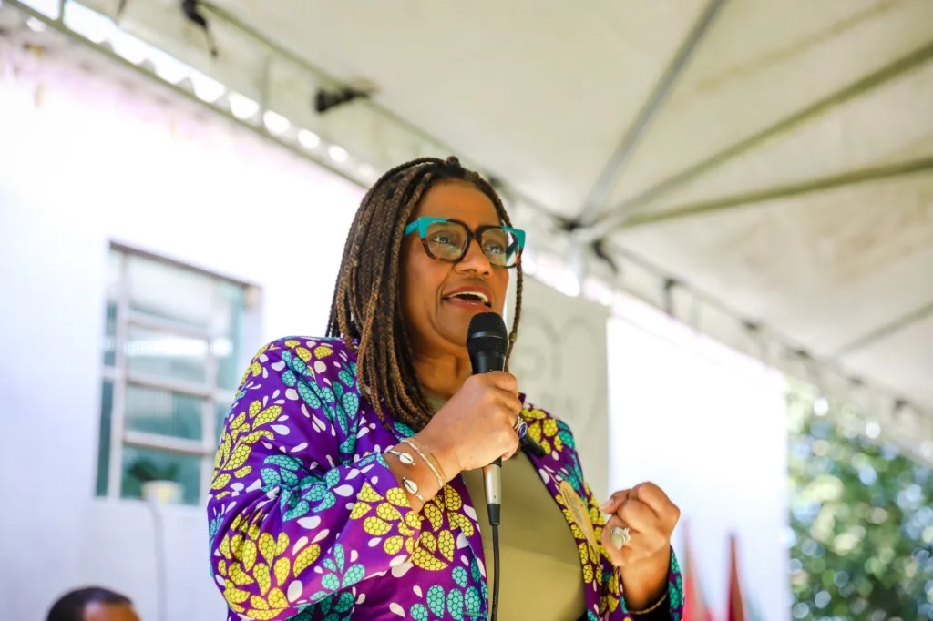 Presente na celebração, a deputada federal licenciada Reginete Bispo (PT) relacionou agroecologia, território e disputa política. “Quando a gente fala em agroecologia, está falando fundamentalmente de luta: luta pelo direito à terra.”