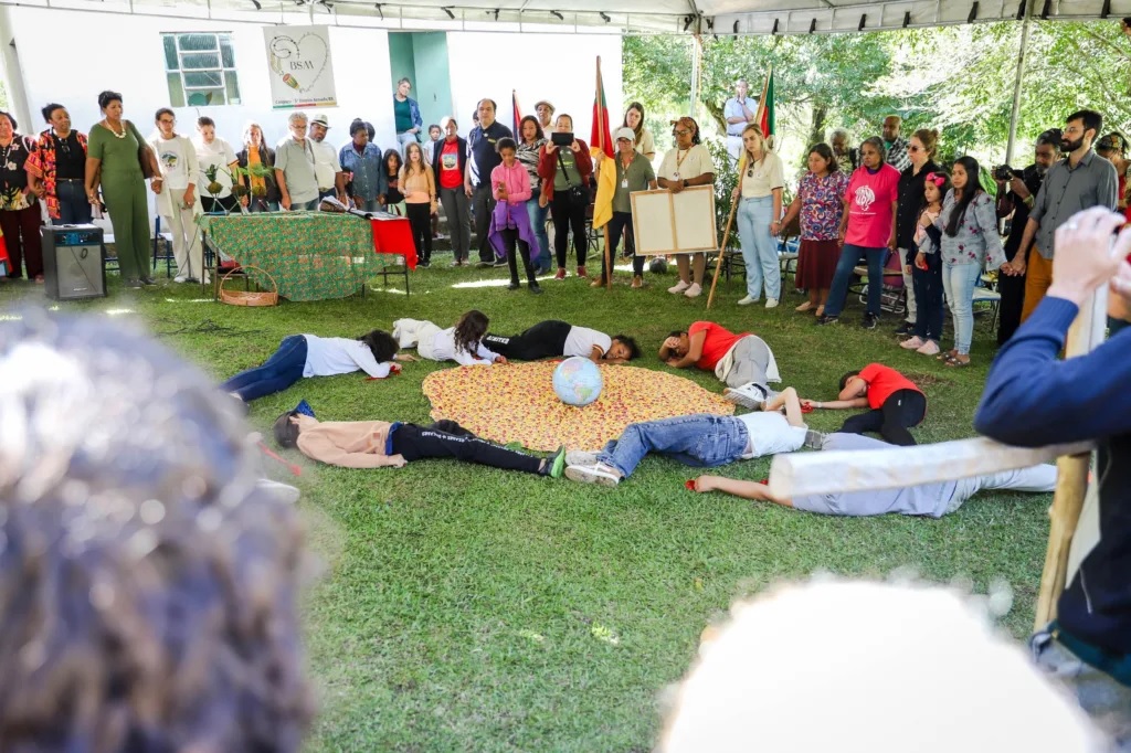 Entre rezas, cantos, partilhas e debates, o Quilombo Bisa Sabina Mendes, no 5º Distrito de Canguçu (RS), recebeu, no sábado (18) e no domingo (19), a 4ª Romaria Ecumênica de Agroecologia. Em meio à paisagem rural, o encontro reuniu agricultoras e agricultores, quilombolas, assentados e movimentos sociais em torno da defesa da agroecologia como projeto político, articulando espiritualidade, produção de alimentos e organização coletiva diante da crise ambiental, da violência no campo e da concentração de terra.