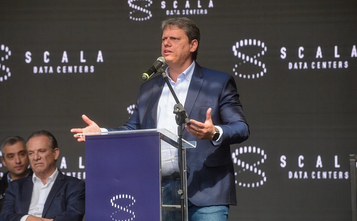 Governador Tarcísio de Freitas participou da inauguração da 2ª fase do Campus Tamboré, da Scala Data Centers, em agosto de 2024. Foto: Francisco Cepeda/Estado de São Paulo
