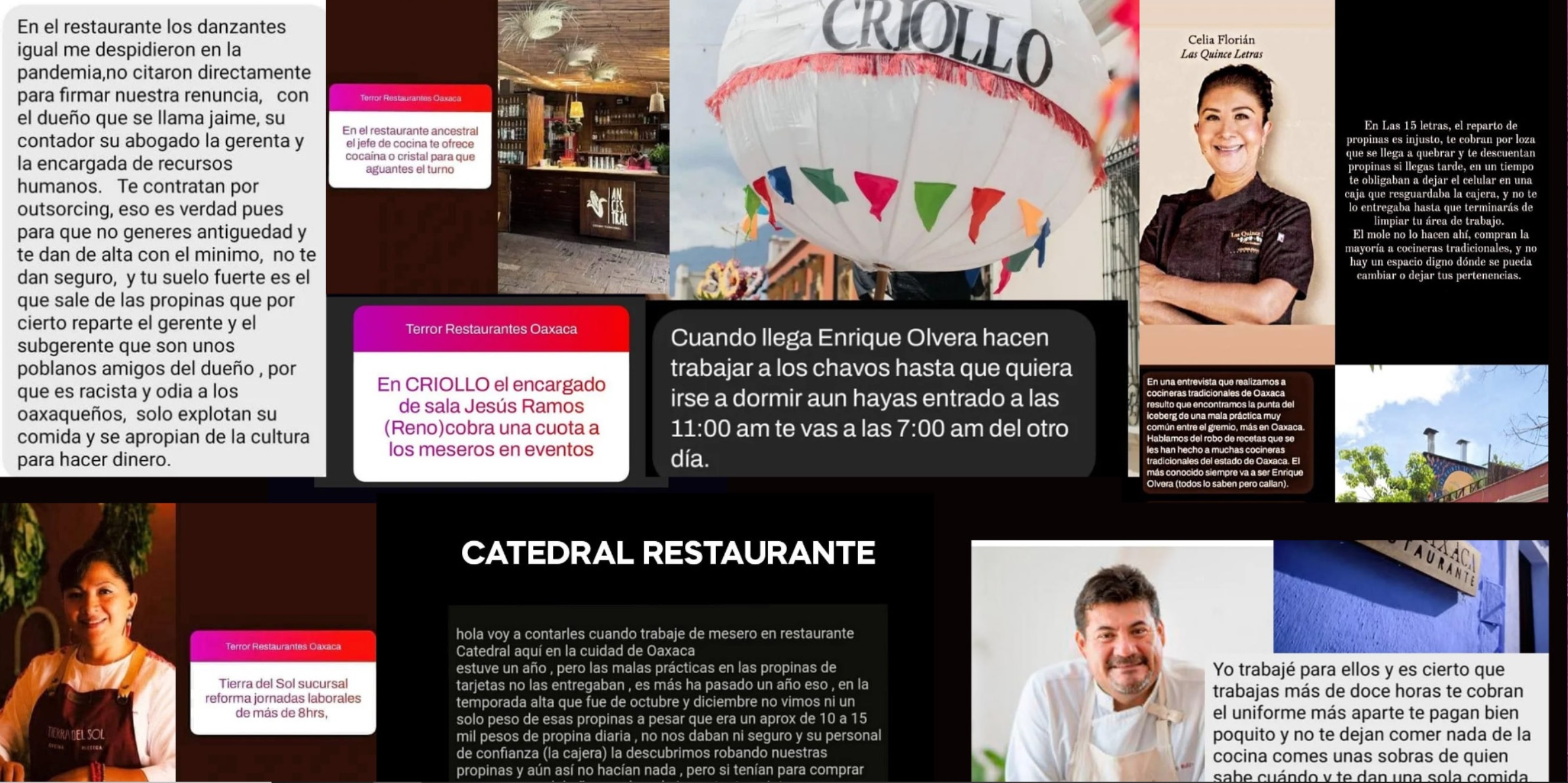 Por otra parte, las malas condiciones laborales en los restaurantes de “alta cocina” en la ciudad han sido denunciadas constantemente por sus trabajadores. En 2023 apareció en las redes sociales una serie de denuncias sobre estas condiciones, prácticas que también han sido confirmadas por diversas fuentes de este reportaje.