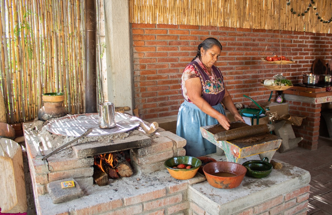 Poco antes de las nueve de la mañana, Trinidad Ruiz, Trini, sale de su casa y camina las cuatro cuadras de bajada que la separan de la iglesia de su comunidad, Teotitlán del Valle, en el valle de Tlacolula, Oaxaca. Mientras espera la llegada de sus visitantes del día, camina hacia el mercado y saluda a sus conocidas, platica un poco. De una camioneta tipo van desciende una pareja de estadounidenses de la tercera edad acompañados por un guía de la ciudad de Oaxaca, quien les presenta y, por el resto de la mañana, traduce cada interacción entre ellos. Trini será su maestra del “taller de cocina rural”, como se llama la excursión del día.