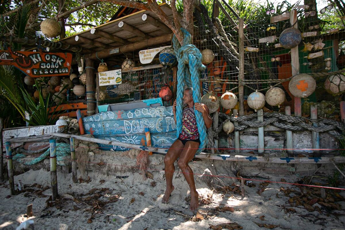 João Pescador em seu quiosque, na Praia dos Pescadores, no Arraial D’Ajuda. Fotos: Julia Dolce.