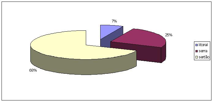 A figura 01 traz ilustrada a distribuição geográfica das casas de sementes por microrregião na região Norte do Ceará. Percebe-se que o maior percentual encontra-se no Sertão. Este fato ocorre em função da maior dificuldade dos agricultores dessa região obter acesso a sementes.