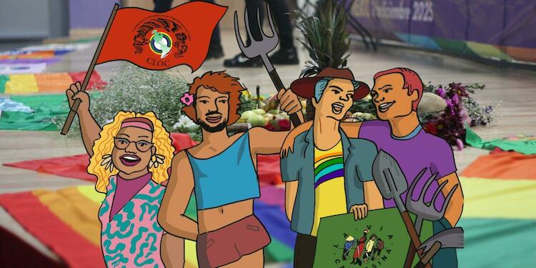 Son nuestras las banderas históricas de la CLOC-LVC. Afirmamos que no puede haber Soberanía Alimentaria ni Agroecología sin pensarse la abolición del patriarcado y sin el reconocimiento pleno de las diversidades en el campo. Cuando hablamos de agroecología hablamos de trasformar radicalmente las formas de relacionamiento entre los sistemas sociales y los sistemas ecológicos, generando nuevas relaciones emancipadas en el campo. Somos parte inherente de las relaciones sociales nuevas que defendemos y de los sistemas alimentarios locales que construimos. Luchamos por una Reforma Agraria Integral y Popular que recupere y redistribuya la tierra expoliada entre toda la clase popular, reconociendo que las disidencias sexuales y de género, las mujeres jefas de hogar, las campesinas sin tierra y las familias diversas del campo hacen parte de nuestra misma clase.
