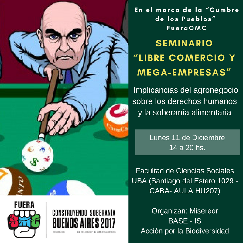 Los participantes de este seminario estamos convencidos que poner un límite al avance del agronegocio en el Cono Sur y frenar las megafusiones corporativas es un desafío que redundará en una mejor alimentación para todos los pueblos en el Sur y el Norte de nuestro planeta.