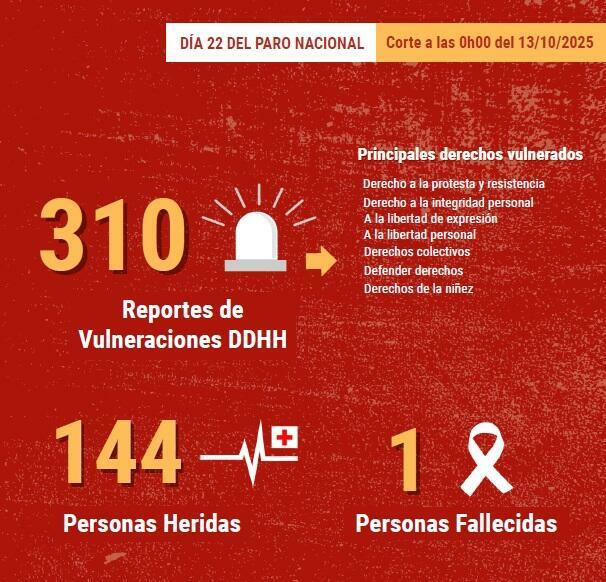 En el día 22 del Paro Nacional 2025, se han podido registrar las siguientes violaciones a los Derechos Humanos.