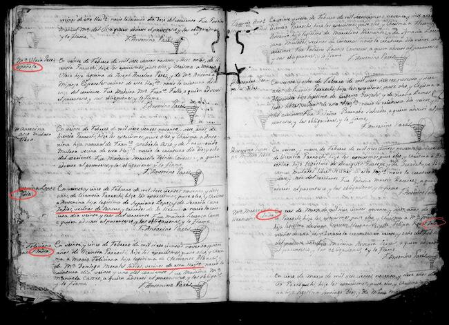 Fotografía recuperada de los libros de bautizo del siglo XVIII, de la Parroquia San José Palencia.