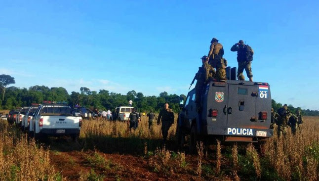 Es llamativa la actuación del Estado paraguayo y el aparatoso despliegue, supuestamente para desalojar a 300 campesinos sin tierra. La última intervención policial de gran envergadura terminó con la masacre.