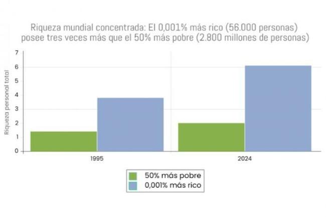 No obstante, la tendencia juega en contra de que esta situación se pueda revertir. Tal y como detalla el documento, en la actualidad el 0,001 % más rico del mundo (56.000 individuos) posee tres veces más riqueza que el 50 % más pobre (2.800 millones de personas). Además, desde 1995 la riqueza mundial privada ha crecido ocho veces más que la pública, según detalla un informe de Oxfam Intermón. En estos últimos 30 años han surgido más de 1.000 nuevos milmillonarios en todo el planeta, y ese 1% más rico de la población mundial amasa ya una fortuna mayor que la del 95% más pobre.