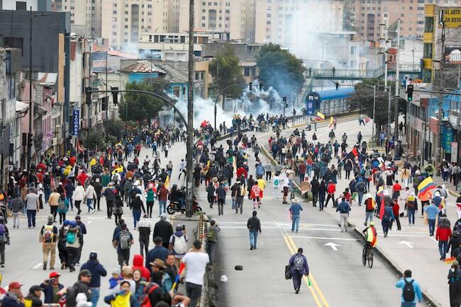 - 12 de octubre: masiva movilización en Quito por el Día de la Interculturalidad y Plurinacionalidad. Fuerza pública reprime manifestación en el redondel de La Villaflora, en el parque El Ejido y en la Av. 6 de diciembre. Durante los enfrentamientos, la fuerza pública utilizó bombas lacrimógenas y de estruendo. También se denunció la agresión a periodistas que cubrían las protestas y el intento de represión a ciudadanos que buscaban refugio en los interiores de la Casa de la Cultura Ecuatoriana.