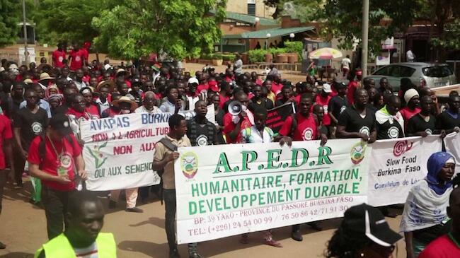 Protesto contra a presença de multinacionais e contra os transgênicos levou associações as ruas em Burkina Faso no ano de 2018. | AFP
