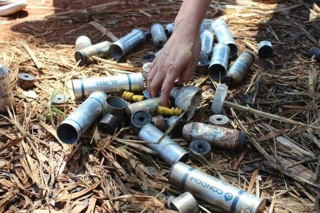 Tres bloqueos con patrulleros policiales del Departamento de Operaciones de Frontera (DOF) en el camino que da acceso a las retomadas de Passo Piraju, Porto Cambira y Guyraroká señalan la sistemática represión y violencia estatal-latifundista intensificada nuevamente contra los Guaraní y Kaiowá desde las retomadas de 2024, esta vez en la región de Caarapó. Además de los patrulleros y policías fuertemente armados, un helicóptero sobrevuela el cielo de Guyraroká, ahuyentando los pájaros y causando terror a la comunidad. El nombre del tekoha (Guyraroká) puede ser traducido como “terreno de los pájaros”. Durante los ataques del Batallón de Policía de Choque (BPChoque), unidad especializada de la Policía Militar de Mato Grosso do Sul, además de balas de goma y bombas “de efecto moral”, fueron lanzadas bombas de gas lacrimógeno desde el helicóptero contra los indígenas.