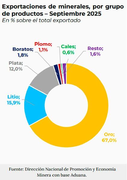 La Argentina se encuentra en un contexto de ampliación de proyectos en cuanto a la actividad minera a nivel internacional. Según el informe mensual de octubre del 2025 de la Secretaría de Minería dependiente del Ministerio de Economía de la Nación, el país presentó un superávit de la balanza comercial de 438 millones de dólares, con un crecimiento interanual del 63%. Los minerales que se extraen centralmente son el oro, litio, plata, y se sabe que el potencial de las reservas de cobre es muy alto (de los más altos del mundo), junto con las reservas de uranio.