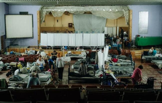 En octubre de 2025, una clínica móvil de MSF acudía dos veces por semana a este centro de tránsito para personas desplazadas por los combates en la región de Dnipropetrovsk, Ucrania. © Julien Dewarichet/MSF