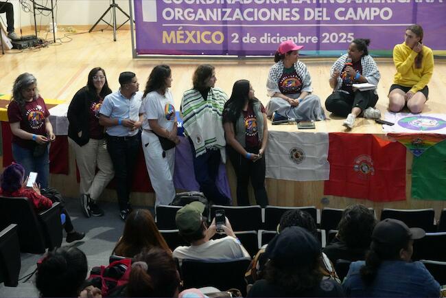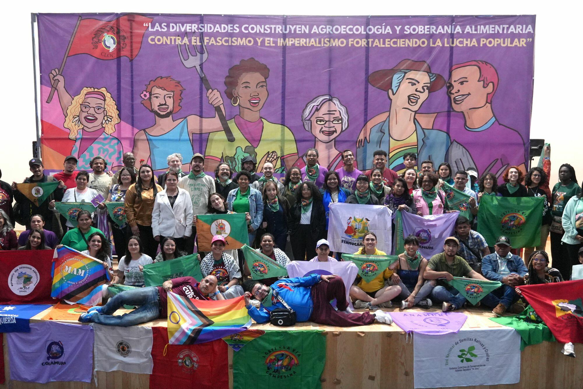 Con una mística poderosa de fuerza y resistencia, y con la presencia de aproximadamente 100 participantes del continente —delegadas, delegades y delegados de las organizaciones miembras de la CLOC–LVC—, se desarrolló el 2 de diciembre en Ciudad de México la I Asamblea de Diversidades y Personas Aliadas, levantando con convicción la consigna: “LAS DIVERSIDADES CONSTRUYEN AGROECOLOGÍA Y SOBERANÍA ALIMENTARIA CONTRA EL FASCISMO Y EL IMPERIALISMO, FORTALECIENDO LA LUCHA POPULAR”.
