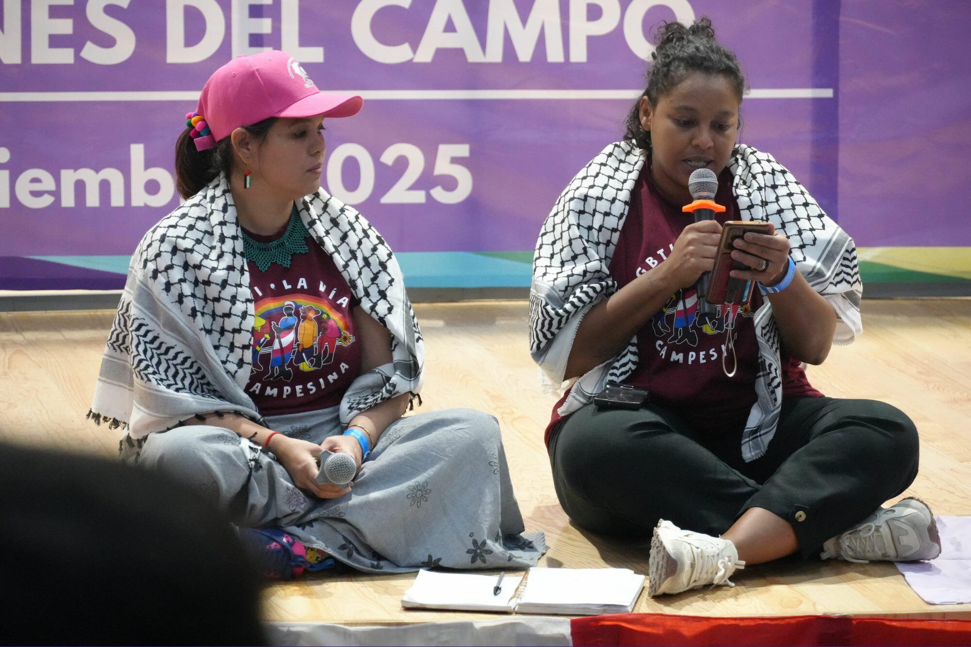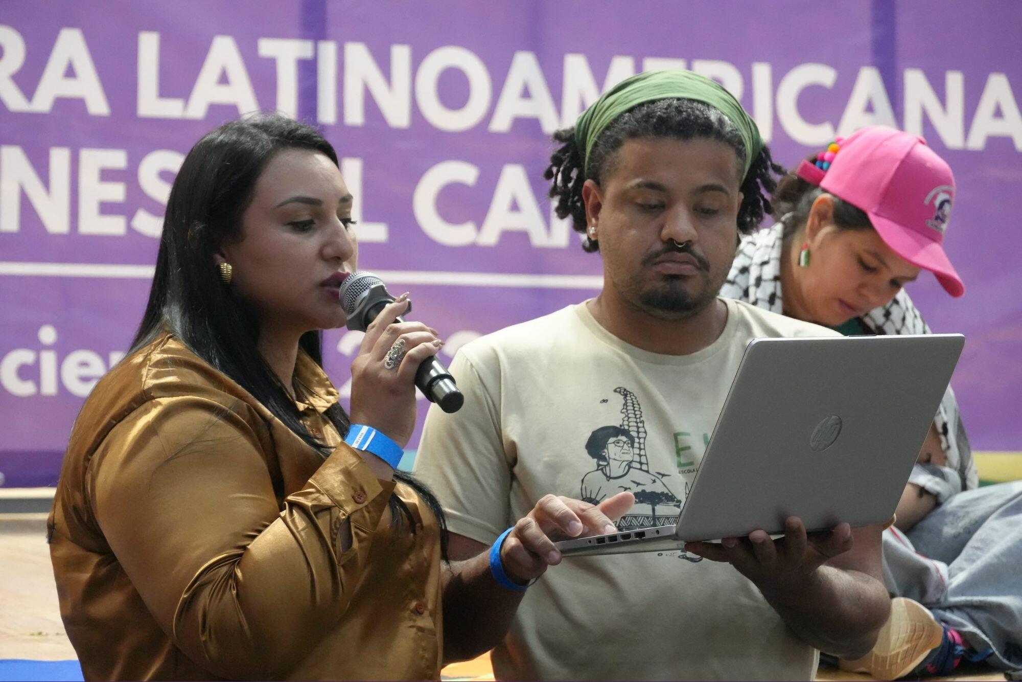 El aporte a las luchas colectivas contra los agronegocios y a favor de la agroecología, la rebeldía y la construcción popular —desde una propuesta de Reforma Agraria y desde la participación en proyectos colectivos con la apuesta de los derechos campesinos— fueron parte central de la agenda trabajada por panelistas en representación de las regiones. Se plantearon elementos clave como la presencia del imperialismo como enemigo fundamental en nuestros países, marcada por la injerencia de EE.UU., y el ejemplo del Caribe, donde se señaló una amenaza latente vinculada a una base militar marítima que incide en las políticas internacionales en contra de la región. También se abordó la discriminación social hacia las personas LGTBIQ+, y se profundizó sobre feminismo, igualdad y el lugar de las diversidades en procesos de incidencia, formación y participación.