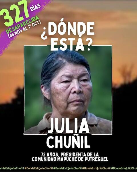 A días de cumplirse 11 meses de la desaparición de Julia Chuñil, defensora de bosques y aguas, madre y abuela, impunidad y montaje se dan la mano y la justicia clasista hace caso omiso de las advertencias internacionales sobre su corrupto desempeño. El gobierno informó en agosto a la Comisión Interamericana de DDHH y a las organizaciones de la sociedad civil que estaba redoblando sus esfuerzos en el caso, y que mantenía informada sobre ello a la familia, tal como se les había requerido. La permanencia de Calfil a cargo del caso es a todas luces insostenible.