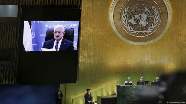 Al presidente de la Autoridad Nacional Palestina, Mahmud Abás, no se le permitió entrar en Estados Unidos para asistir a la Asamblea General de la ONU, por lo que participó por videoconferencia. Imagen: Jeenah Moon/REUTERS