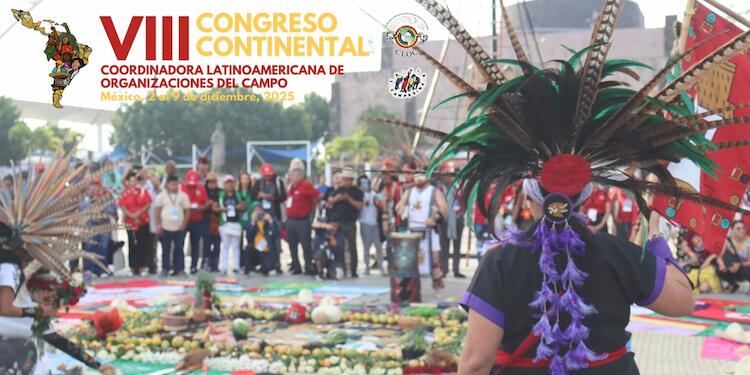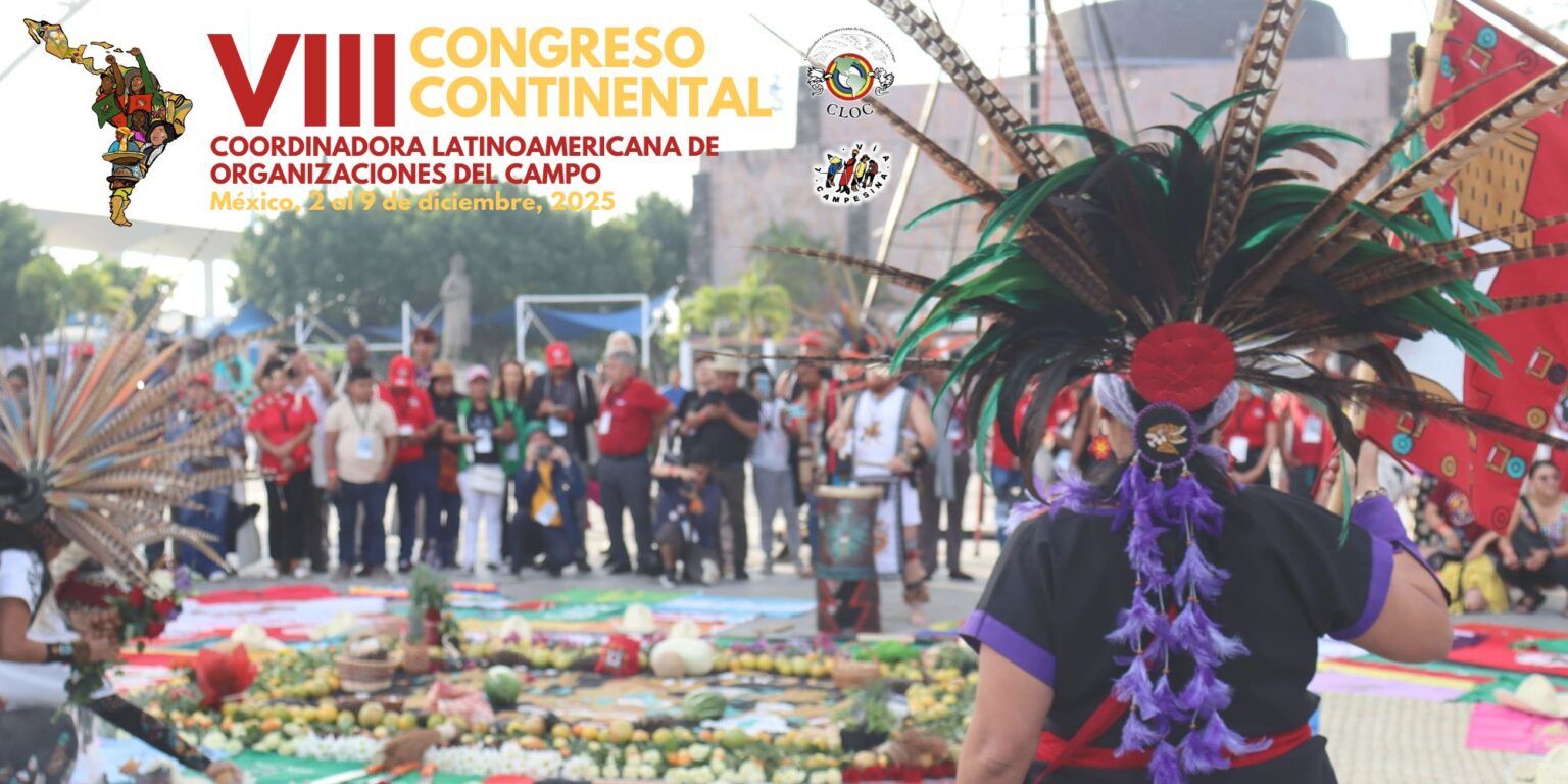 Recuperando este legado, durante los días 2 al 9 de diciembre de 2025, llevamos a cabo nuestro VIII Congreso Continental de la CLOC-VC, para reflexionar en torno a los desafíos, amenazas, preocupaciones que enfrentan nuestros pueblos en los tiempos actuales; en la búsqueda de las iniciativas, acciones, articulaciones y propuestas que doten a nuestros pueblos y organizaciones de las herramientas y propuestas de solución para continuar en el camino para lograr la soberanía alimentaria y de la transformación sistémica por un nuevo mundo de justicia, de paz y por la vida de todos los seres y de la madre tierra, iniciando con una ceremonia indígena realizada por el grupo Tlahuikayotl, a quienes agradecemos profundamente por habernos traído las energías de nuestros ancestros.